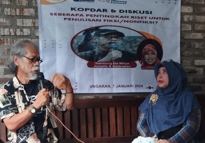 Satupena Diskusikan Novel Berbasis Riset di Ungaran 09 Januari 2024, 00:15 am Bambang Iss Wirya (kiri) didampingi moderator Tirta Nursari menunjukkan pentingnya riset dalam penulisan novel dalam…