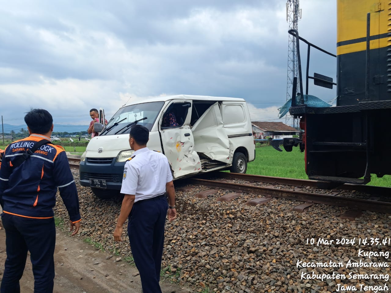 Semarangsekarang.com(Semarang),- PT. KAI menyayangkan tertempernya KA Wisata Ambarawa dengan Mobil Mini Bus, di perlintasan sebidang yang tidak dijaga, Km 35+267 petak jalan antara Stasiun Ambarawa – Tuntang, Minggu (10 Maret 2024) pukul 14.33 WIB. Sebelum kejadian Masinis KA Wisata Ambarawa telah membunyikan klakson lokomotif berulangkali sebagai peringatan agar pengendara berhenti dan tidak buru-buru melintas rel kereta api. Nyatanya, pengendara tetap memacu mobilnya, sehingga kecelakaan pun tak dapat dihindari.