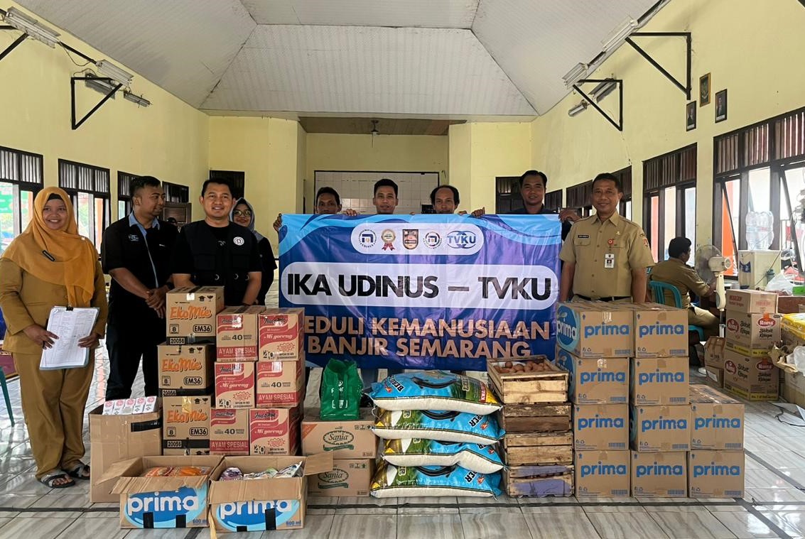 Semarangsekarang.com (Semarang),- Ikatan Alumni Universitas Dian Nuswantoro (IKA Udinus) bersama TVKU tergerak untuk memberikan bantuan kepada warga terdampak banjir di Kecamatan Genuk, Kota Semarang. Secara simbolis, bantuan diserahkan langsung oleh Ketua Harian IKA Udinus, Dr. Heri Pamungkas, S.S., M.I.Kom.