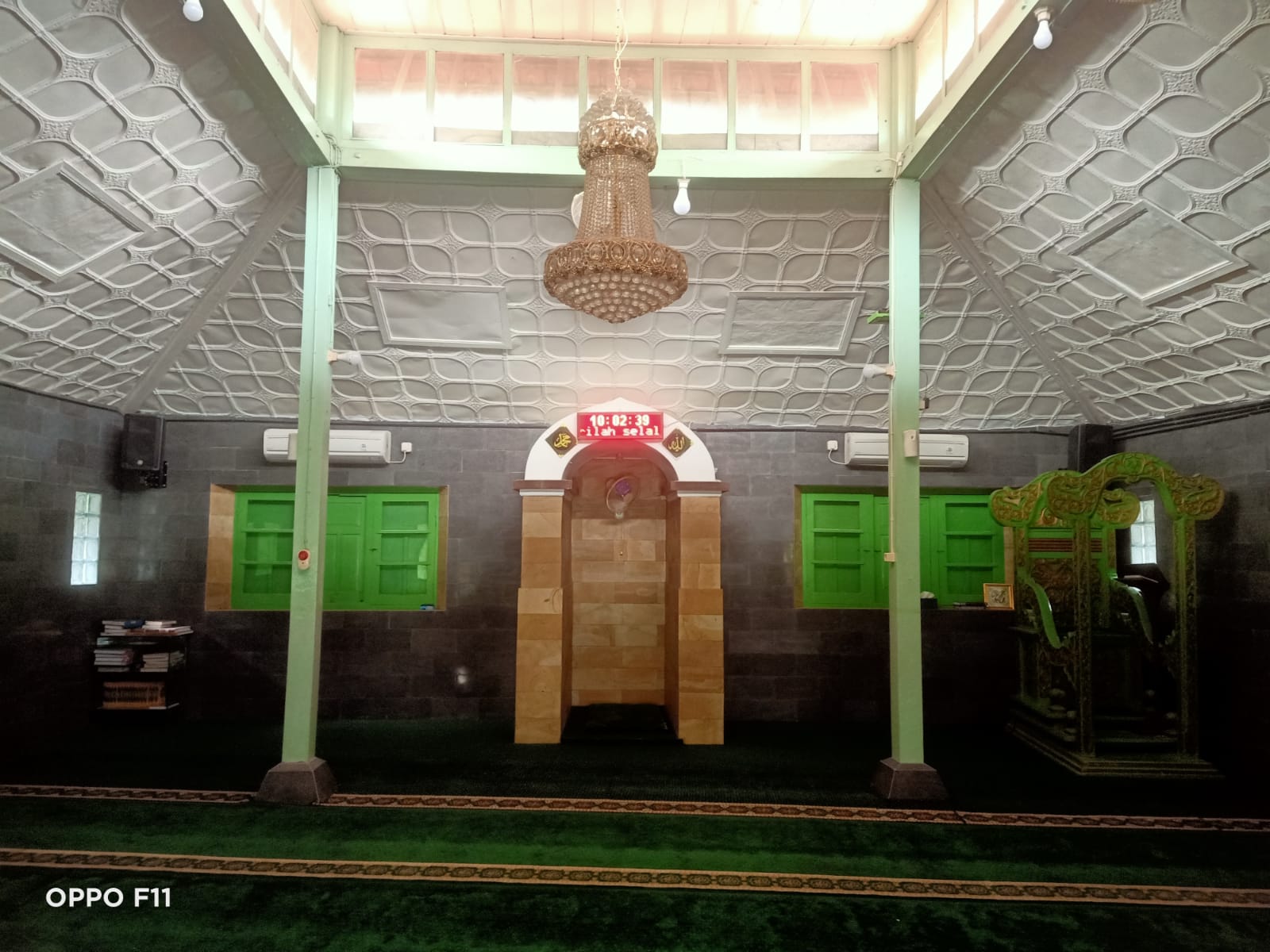 Setiap tempatnya layak untuk diabadikan di setiap jengkal bagian masjid. Mulai dari mihrab yang terlihat mungil, laiknya masjid-masjid zaman dulu. Mimbar berwarna hijau, yang terlihat sangat berumur hingga empat tiang yang berdiri tepat di tengah masjid menopang bagian lainnya.