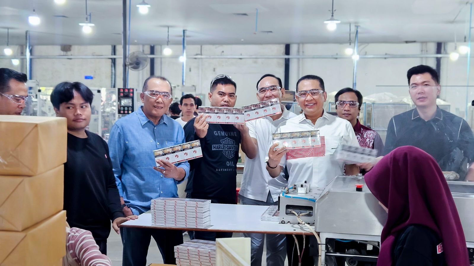 Bamsoet beserta rombongan meninjau proses produksi rokok HS (foto:ist)
