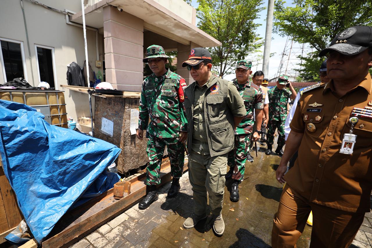 Kepala BNPB Letjen TNI Dr. Suharyanto S.Sos., M.M., (tengah) bersama Gubernur Jawa Tengah, Ahmad Luthfi (kanan) meninjau rumah pompa Sringin, Kaligawe, Kota Semarang, Jawa Tengah, Senin (3/11).