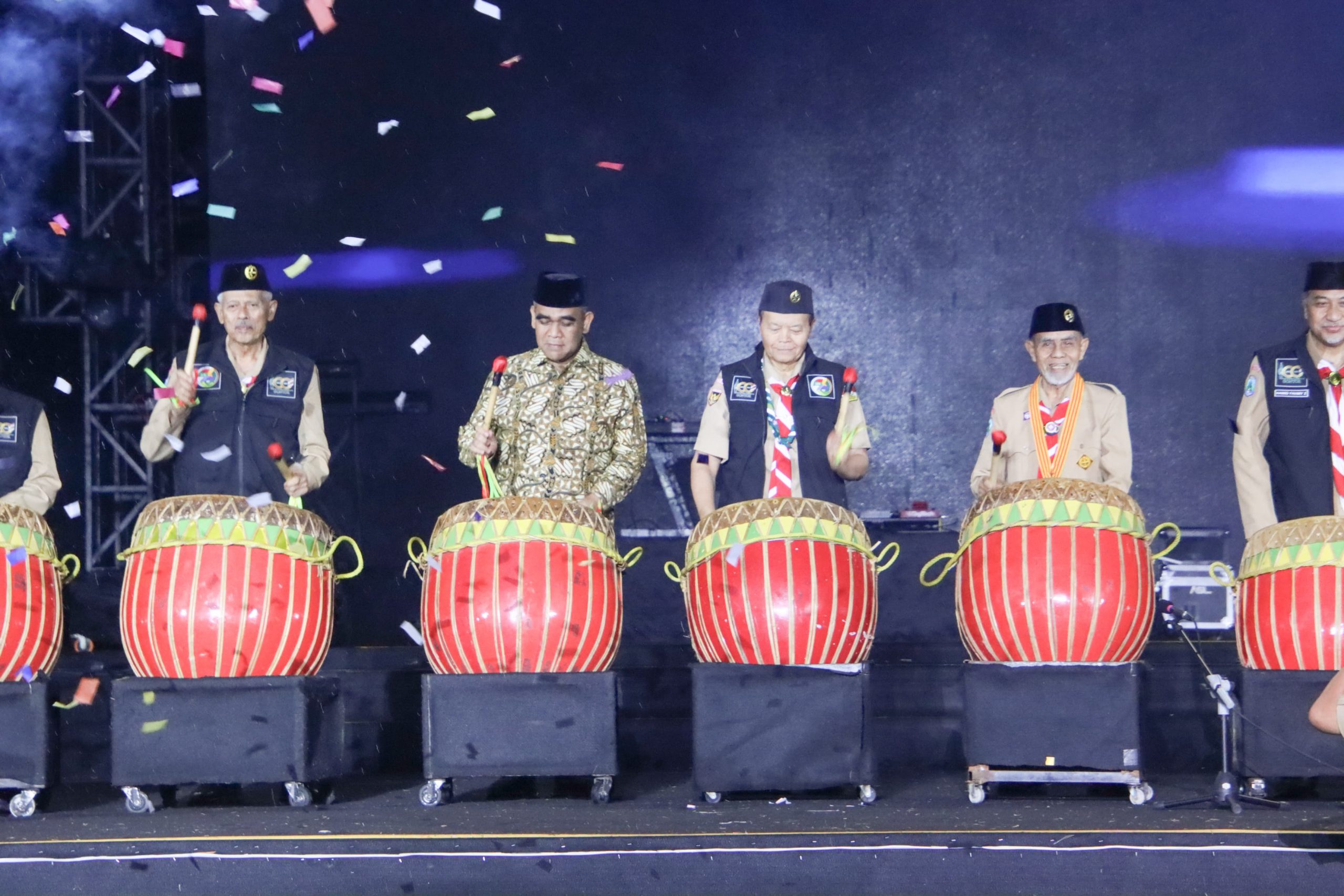 Ketua MPR Ahmad Muzani Memukul Tambur menandai dibukanya perkemahan Pramuka Muslim dunia, Jamboree 2025. (foto:ist)