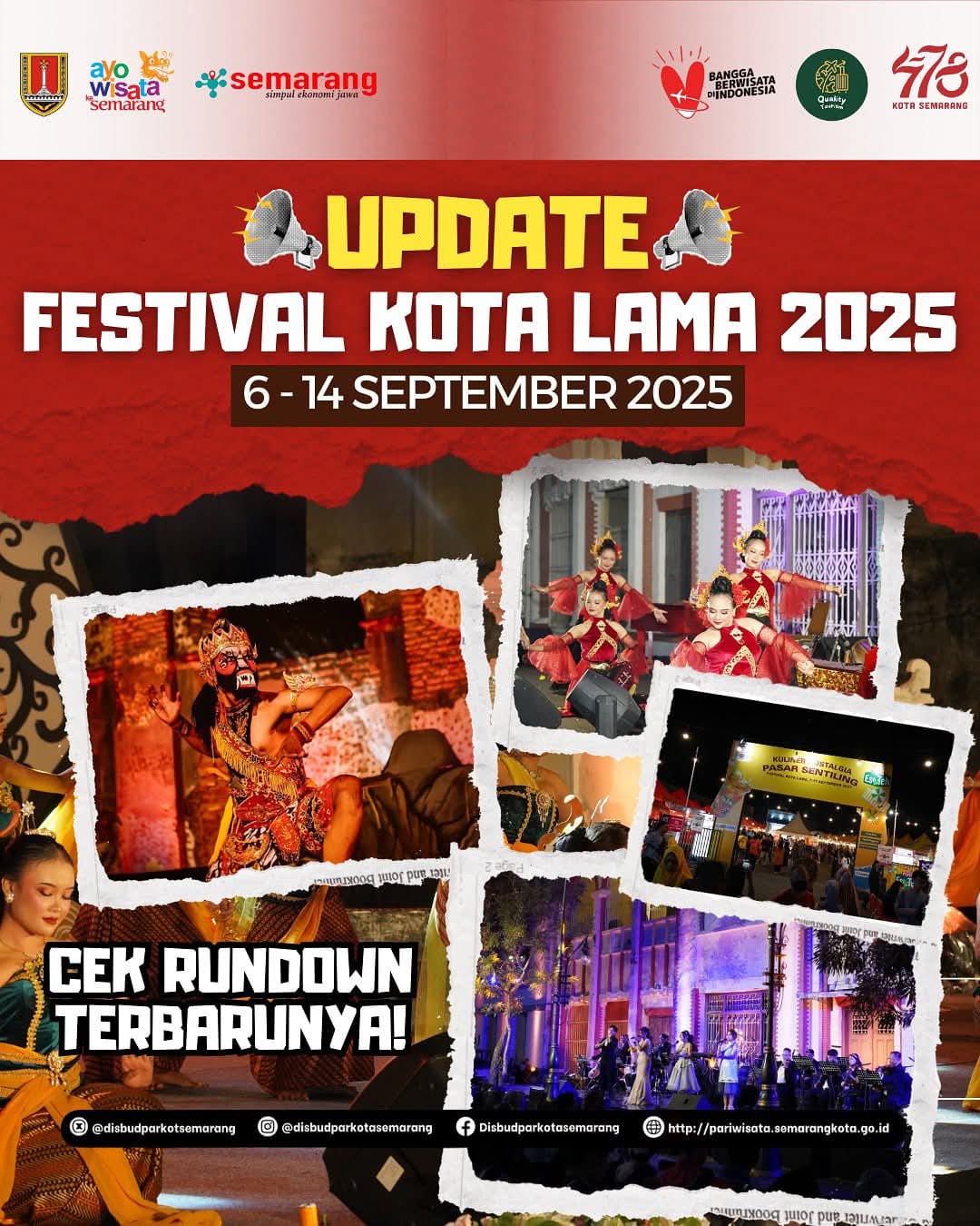 Tidak ketinggalan, panitia Festival Kota Lama 2025 juga menghadirkan Pasar Sentiling Kuliner Nostalgia di Parkir Metro Point mulai 6 – 14 September 2025. Acara ini menyajikan kuliner legendaris dari Semarang, Yogyakarta, Surabaya, Aceh, Makassar, hingga Pontianak.