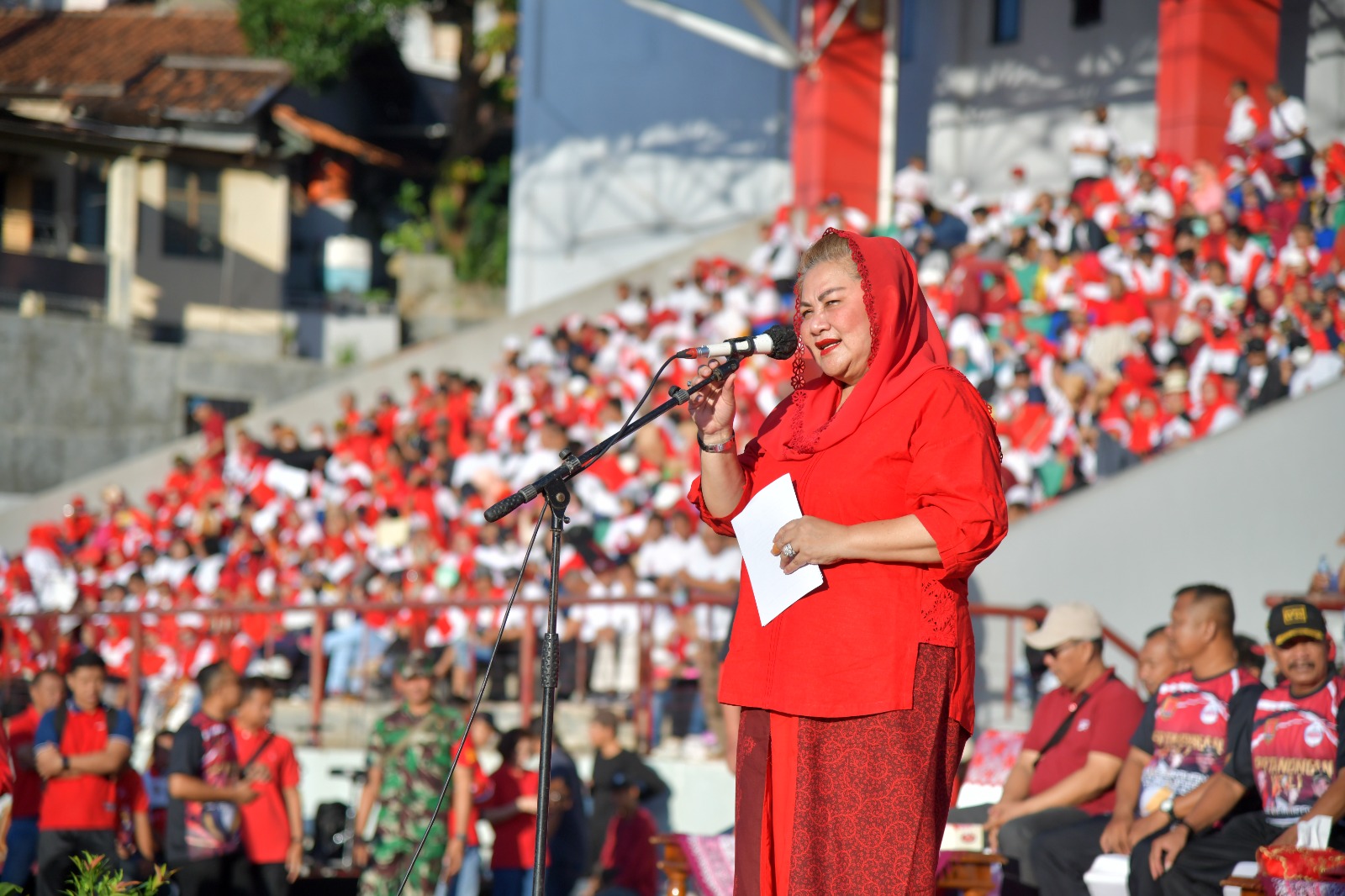 Wali Kota Semarang Hevearita Gunaryanti Rahayu saat membuka pertandingan voli antar kelurahan, Sabtu (01/07/2023). (foto: istimewa)