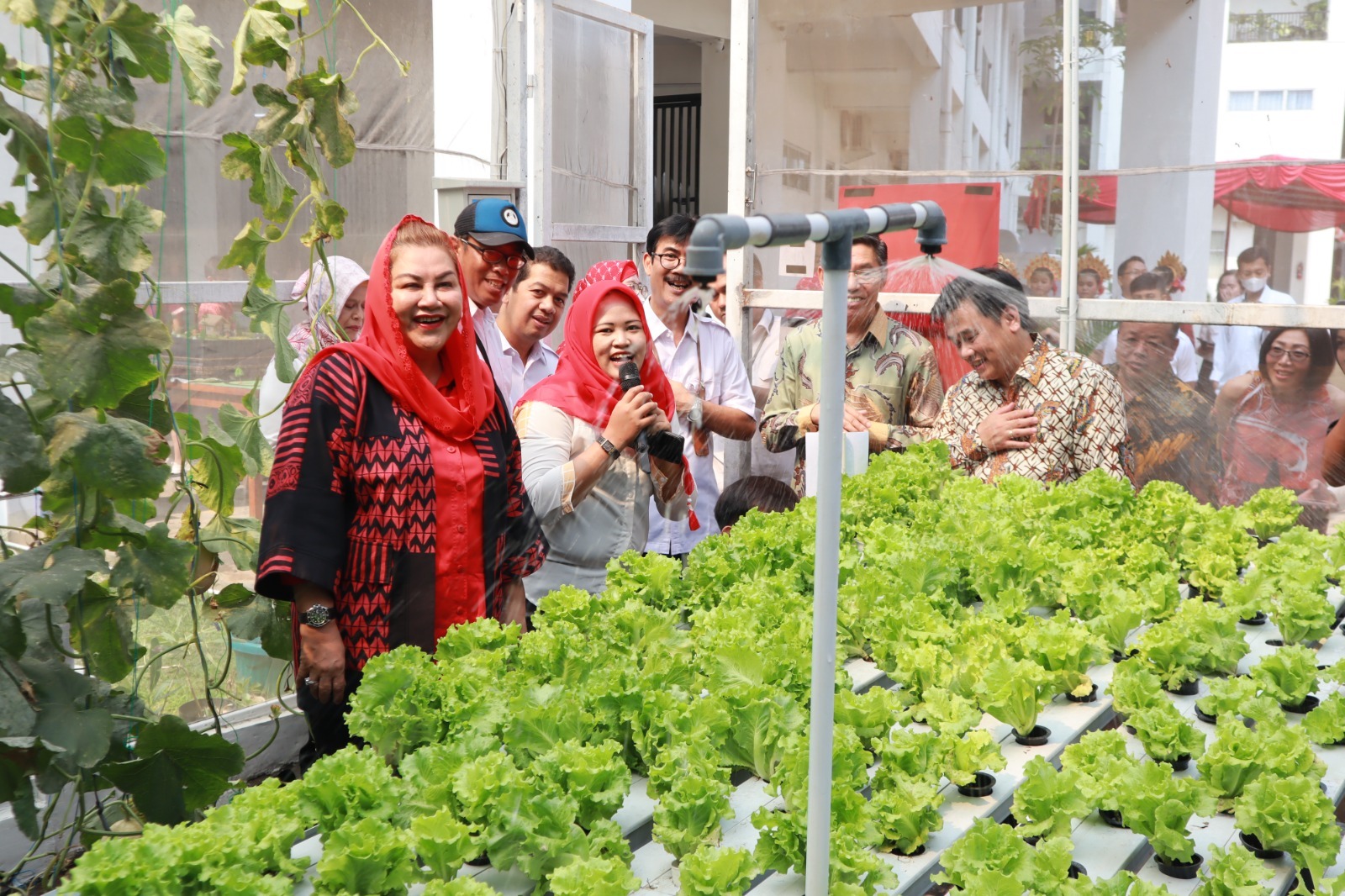 “Ini urban farming yang begitu modern. Tadi ada hidroponik yang menggunakan teknologi Apenta Phoenix, yang jika suhu dalam ruangan panas akan ada sprayernya,” katanya.