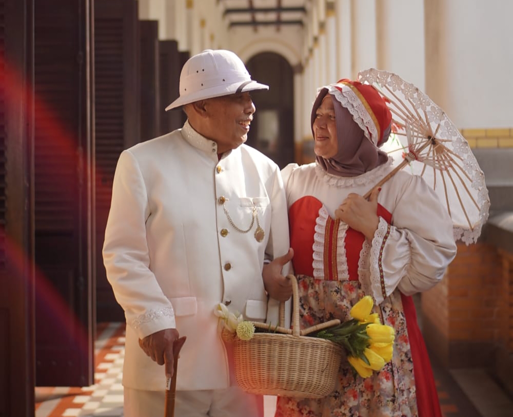 Berkunjung di Museum Lawang Sewu dapat menikmati busana sewa yang bisa mirip nonik+nonik Belanda atau yang cowok bisa mirip pejabat kereta api. (foto: istimewa)
